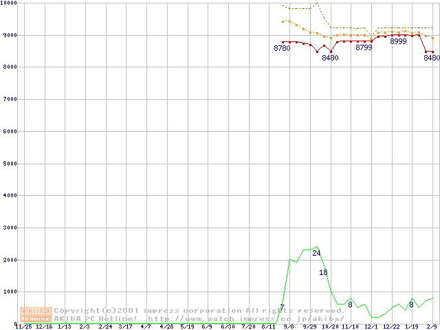 Deskstar 60GXP (7200rpm,UltraATA/100 2MB)の最安値推移