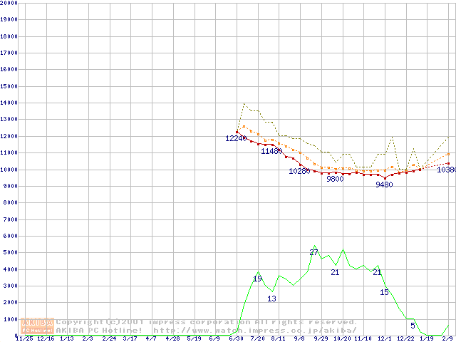 DiamondMax D540X (5400rpm,UltraATA/100,40GB/Platter)の最安値推移
