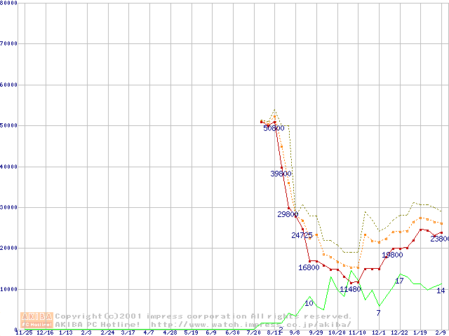 メモリ主要製品の最安値推移