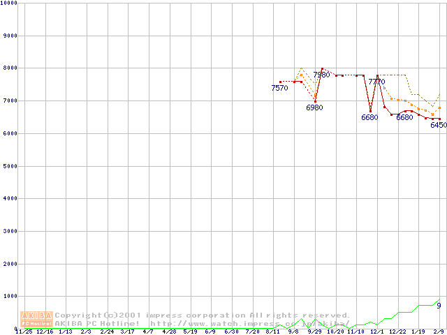 Socket 370 (PGA,FSB 133MHz,L2 64KB)の最安値推移