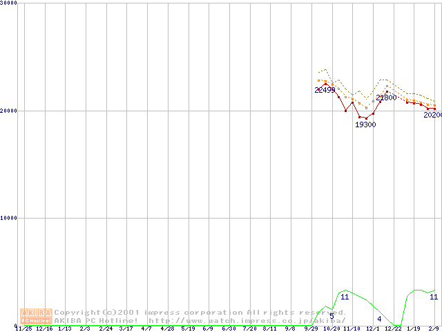 HDD主要製品(最安値2万円以上)の最安値推移