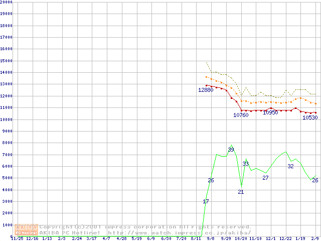 Celeron 1.10GHz FC-PGA リテールパッケージの価格推移