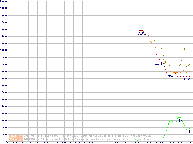 Travelstar 15GN (9.5mm,4200rpm,UltraATA/100,512KB,流体軸受)の最安値推移