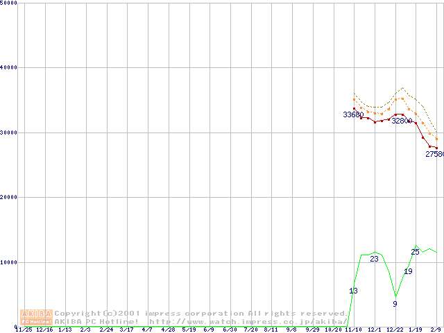 Socket A (Palomino,OPGA,FSB 266MHz,L2 256KB)の最安値推移