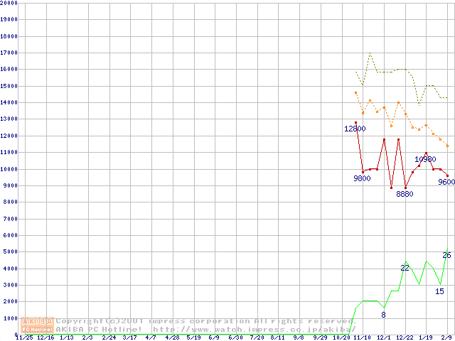 PC2700(DDR333) DDR SDRAM DIMMの最安値推移