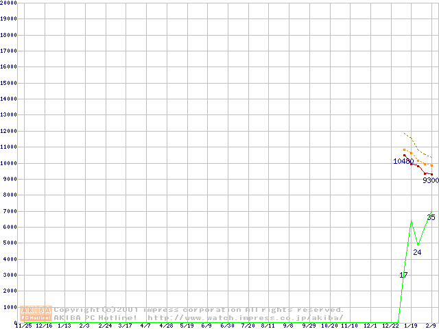 Celeron 1A GHz FC-PGA2 リテールパッケージの価格推移