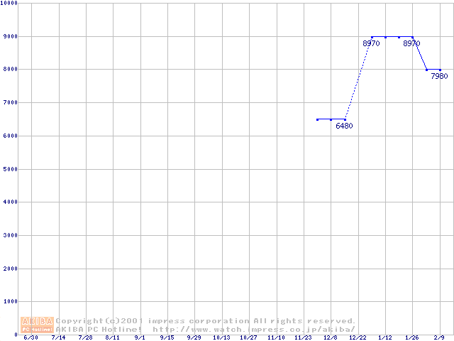 | [↑前グラフ]: | MHNシリーズ (9.5mm,4200rpm,UltraATA/100,2MB)の最安値推移 |