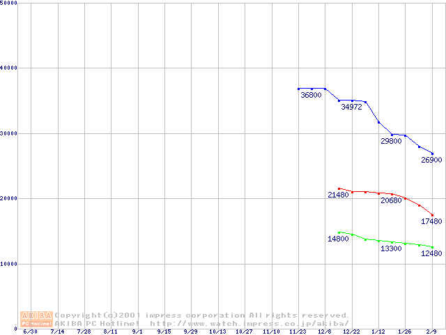 | [↑前グラフ]: | Travelstar 48GH (12.5mm,5400rpm,UltraATA/100,2MB,流体軸受)の最安値推移 |