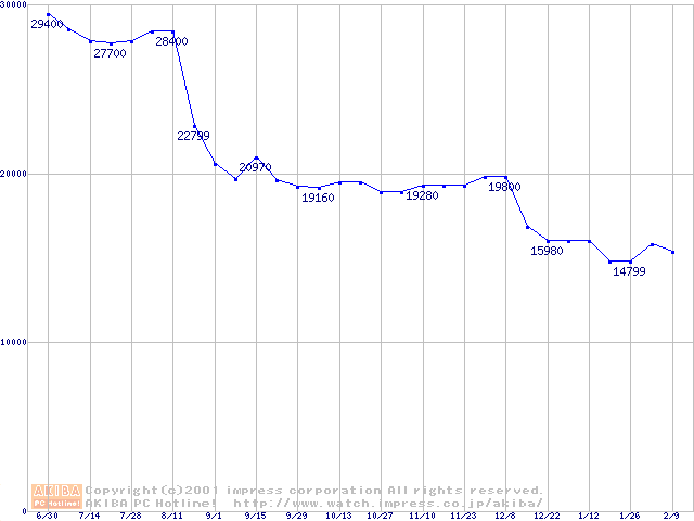 | [↓次グラフ]: | Socket A (Thunderbird,PGA,FSB 266MHz,L2 256KB)の最安値推移 |