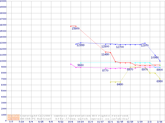 | [↑前グラフ]: | 2.5インチHDD主要製品の最安値推移 |
