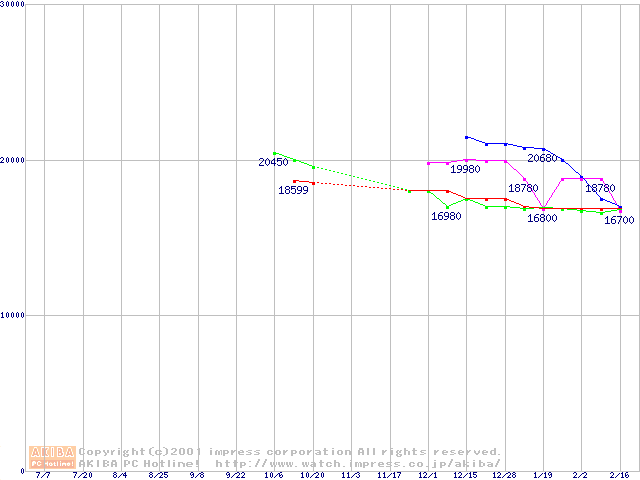 | [↓次グラフ]: | 2.5インチHDD主要製品(最安値2万円~3万円未満)の最安値推移 |