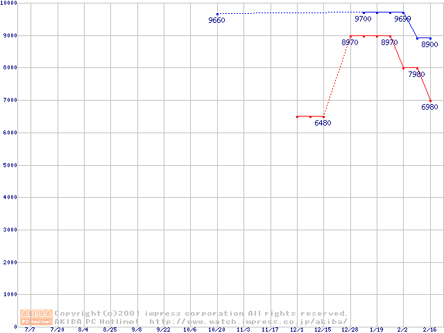 | [↓次グラフ]: | 2.5インチHDD 10GB~20GB未満(9.5mm厚)の最安値推移 |