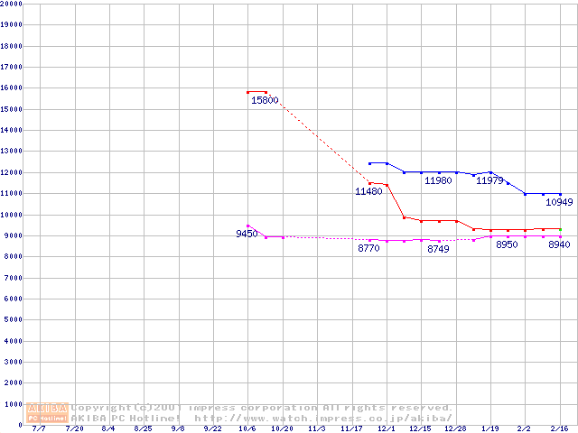 | [↓次グラフ]: | 2.5インチHDD 20GB~30GB未満(9.5mm厚)の最安値推移 |