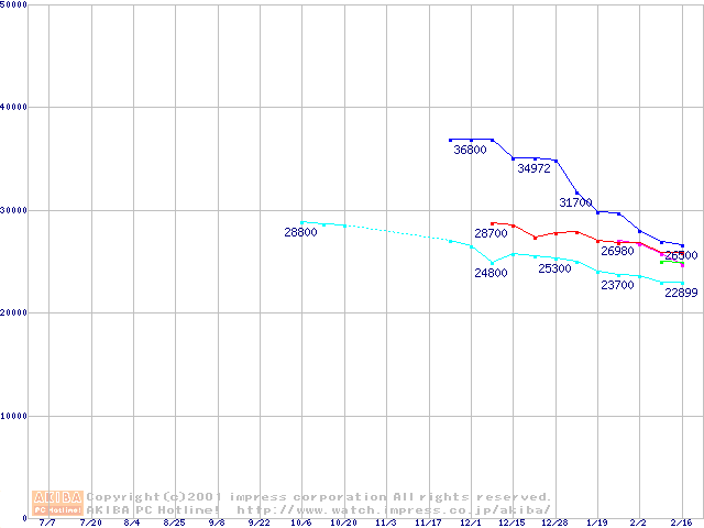 | [↑前グラフ]: | 2.5インチHDD 30GB~40GB未満(9.5mm厚)の最安値推移 |