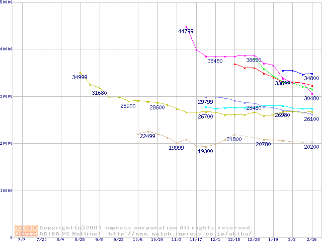 HDD主要製品(最安値1万5千円~2万円未満)の最安値推移
