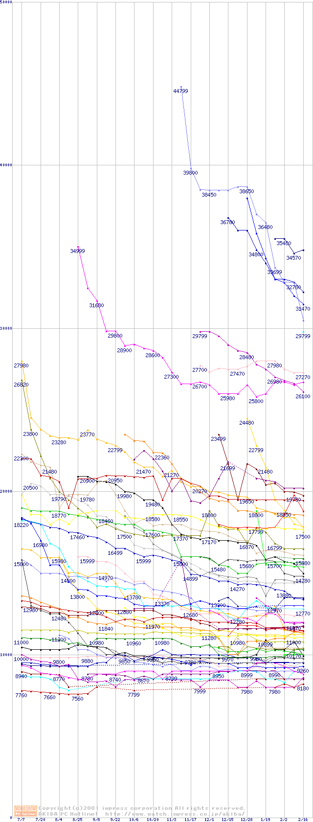 HDD主要製品の最安値推移