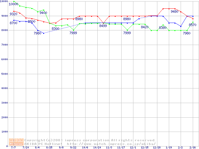 | [↓次グラフ]: | HDD 30GB~40GB未満(5400rpmクラス)の最安値推移 |