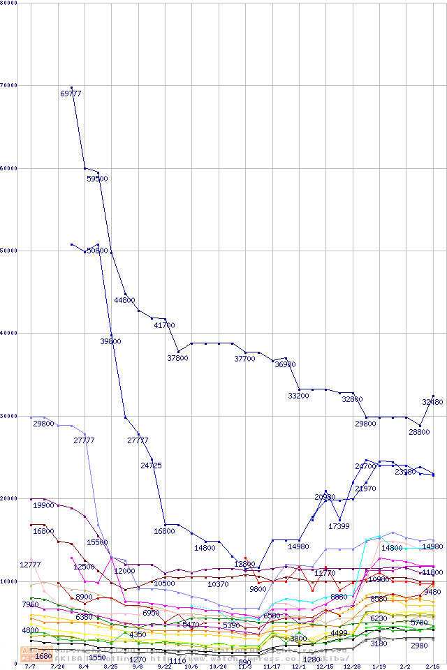 メモリ主要製品の最安値推移