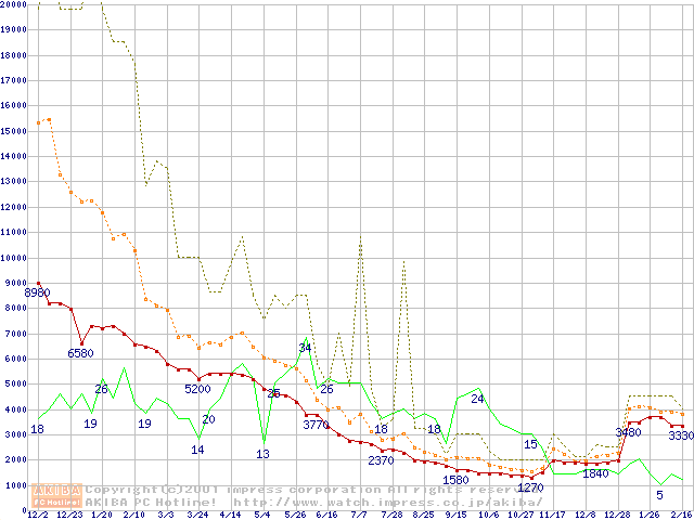 PC133 SDRAM DIMM CasLatency=2の最安値推移
