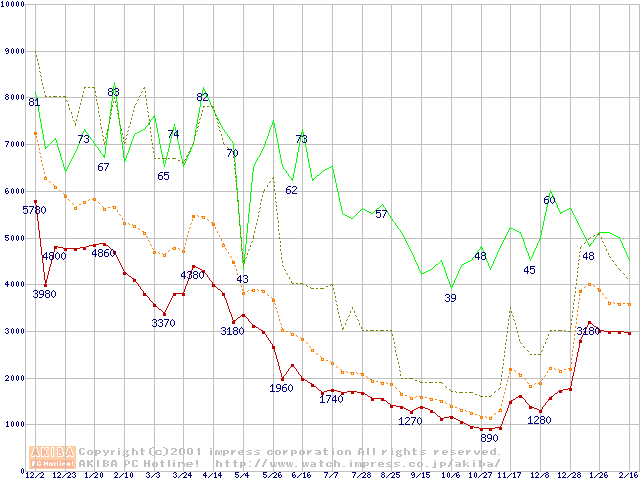 PC133 SDRAM DIMM CasLatency=3の最安値推移