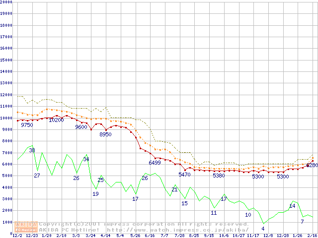 Celeron 700MHz FC-PGA リテールパッケージの価格推移