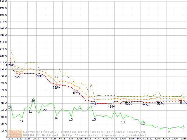 Socket A (Spitfire,PGA,FSB 200MHz,L2 64KB)の最安値推移
