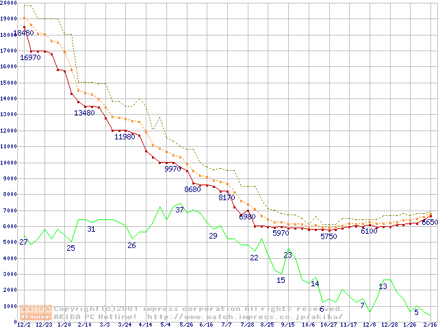 Celeron 766MHz FC-PGA リテールパッケージの価格推移