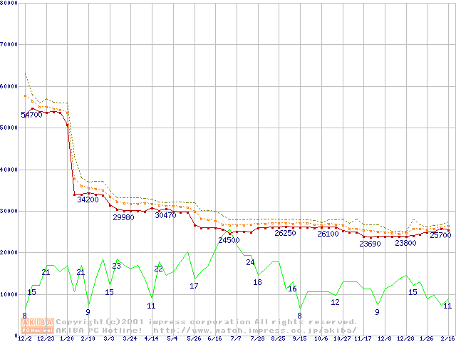 Slot 1・FSB 100MHzの最安値推移