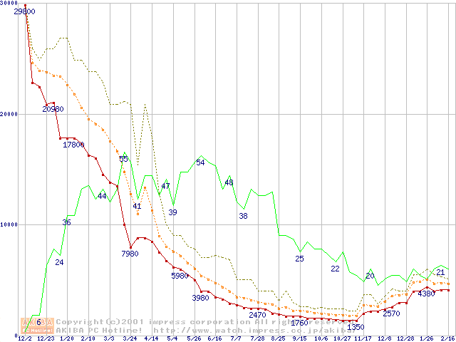 PC2100(DDR266) DDR SDRAM DIMM(CL 2.5)の最安値推移