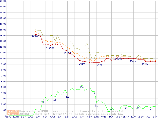 WD Caviar (5400rpm,UltraATA/100)の最安値推移