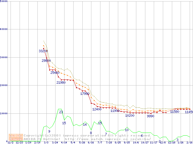 Socket A (Thunderbird,PGA,FSB 266MHz,L2 256KB)の最安値推移