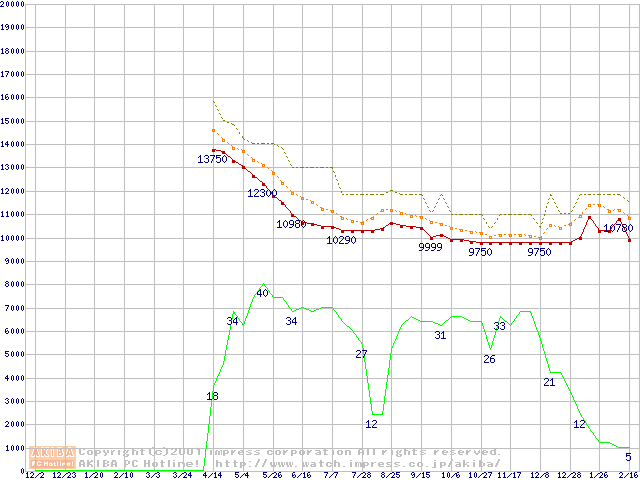 Deskstar 60GXP (7200rpm,UltraATA/100 2MB)の最安値推移
