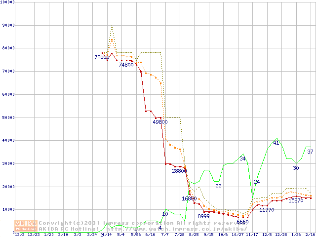 PC2100(DDR266) DDR SDRAM DIMM(CL 2.5)の最安値推移