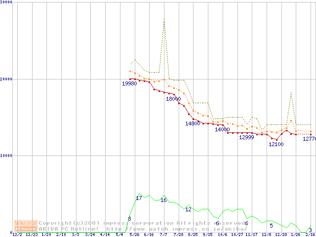 DiamondMax 536DX (5400rpm,UltraATA/100,33.3GB/Platter)の最安値推移