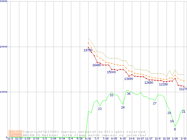 U6 (5400rpm,UltraATA/100 2MB 40GB/Platter)の最安値推移