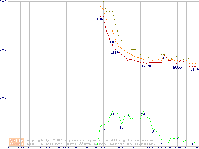 DiamondMax D540X (5400rpm,UltraATA/100,40GB/Platter)の最安値推移
