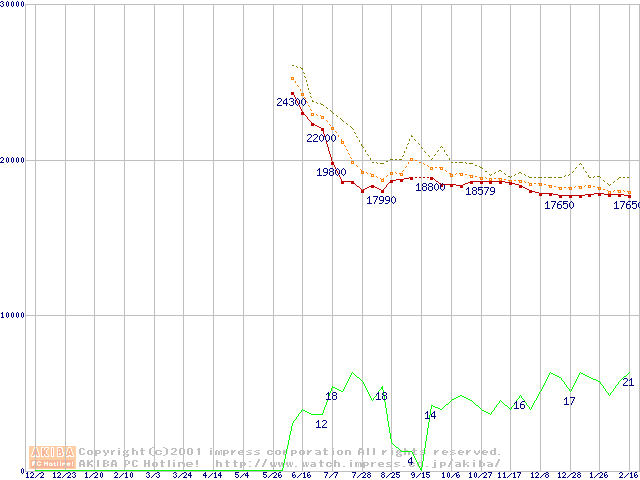 WD Caviar (5400rpm,UltraATA/100)の最安値推移