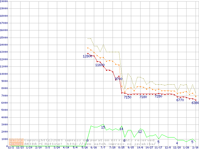 Socket A (Spitfire,PGA,FSB 200MHz,L2 64KB)の最安値推移
