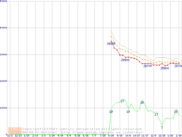 WD Caviar (7200rpm,UltraATA/100,2MB)の最安値推移