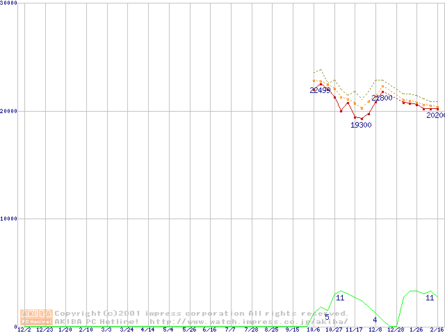 U6 (5400rpm,UltraATA/100 2MB 40GB/Platter,流体軸受)の最安値推移