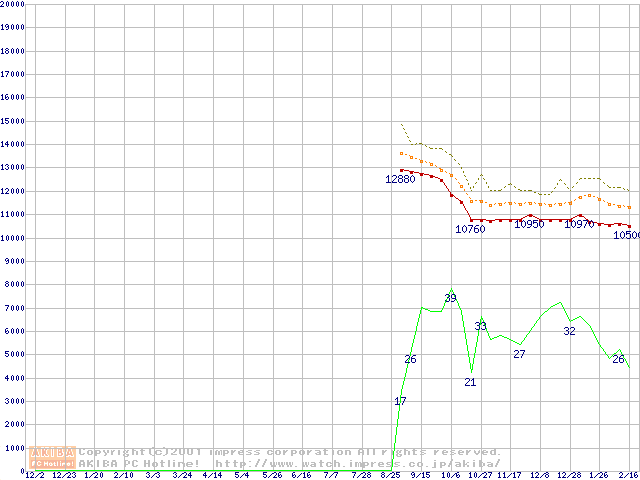 Celeron 1.10GHz FC-PGA リテールパッケージの価格推移