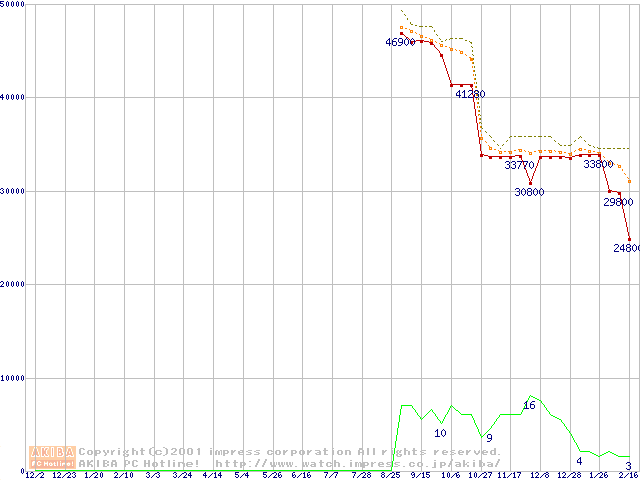 Socket 423 (PGA,L2 256KB)の最安値推移