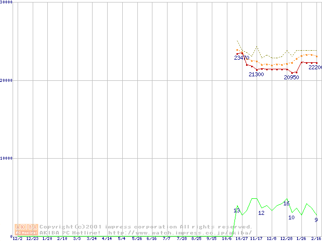 Socket A (Palomino,OPGA,FSB 266MHz,L2 256KB)の最安値推移