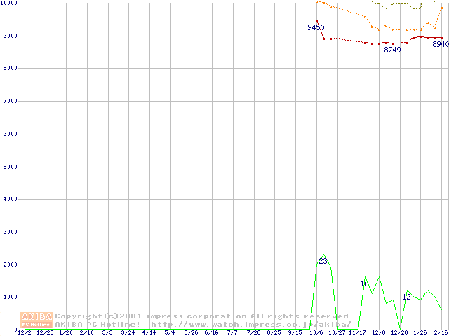 Travelstar 20GN (9.5mm,4200rpm,UltraATA/66,2MB/512KB/256KB)の最安値推移
