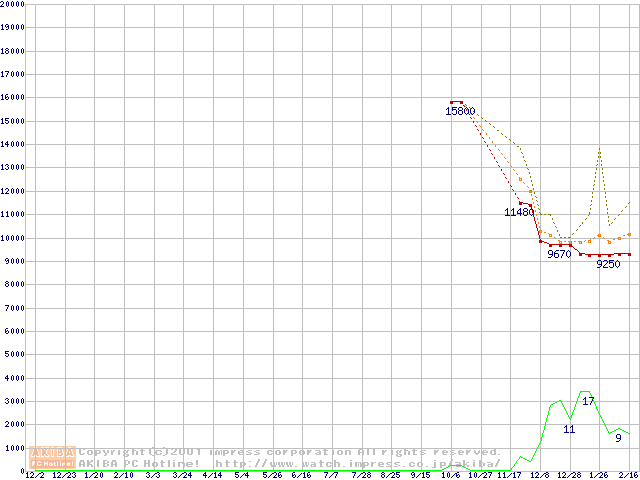Travelstar 15GN (9.5mm,4200rpm,UltraATA/100,512KB,流体軸受)の最安値推移