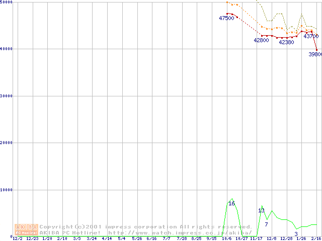 Travelstar 48GH (12.5mm,5400rpm,UltraATA/100,2MB,流体軸受)の最安値推移