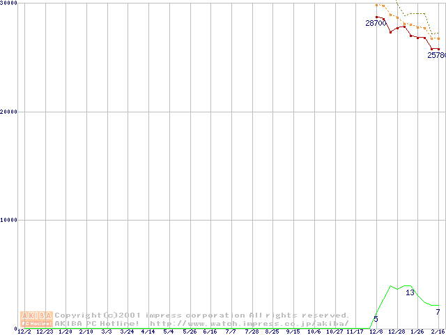 2.5インチHDD主要製品(最安値2万円~3万円未満)の最安値推移