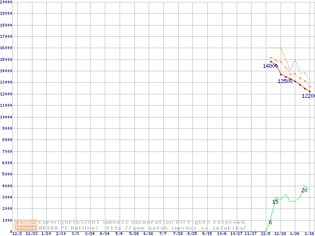 Travelstar 40GN (9.5mm,4200rpm,UltraATA/100,20GB/Platter,2MB,流体軸受)の最安値推移