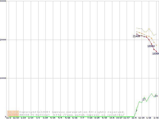 Travelstar 40GN (9.5mm,4200rpm,UltraATA/100,20GB/Platter,2MB,流体軸受)の最安値推移