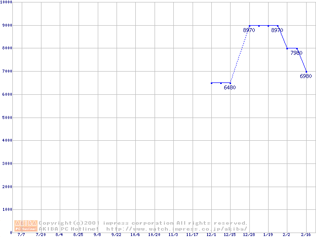 | [↑前グラフ]: | MHNシリーズ (9.5mm,4200rpm,UltraATA/100,2MB)の最安値推移 |